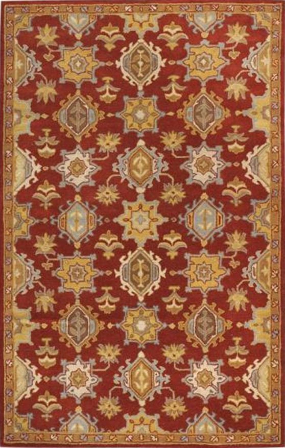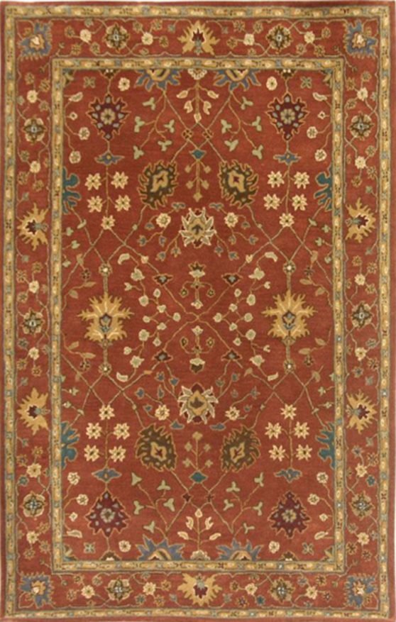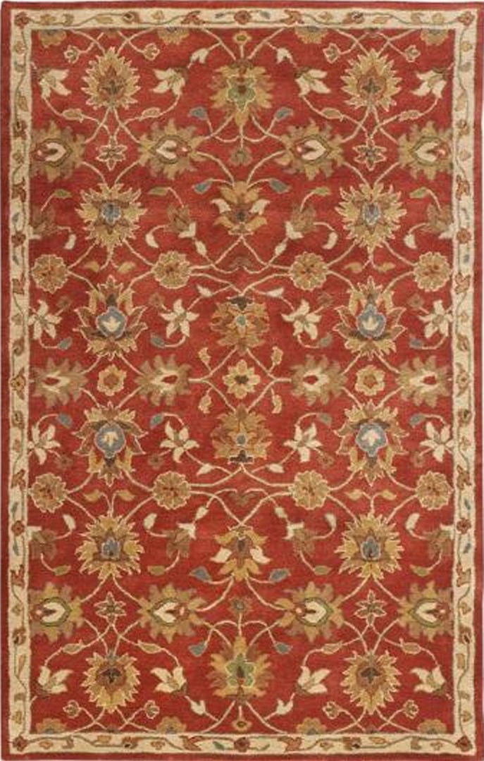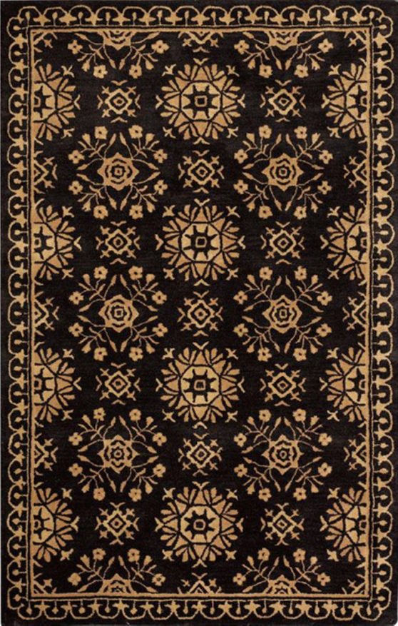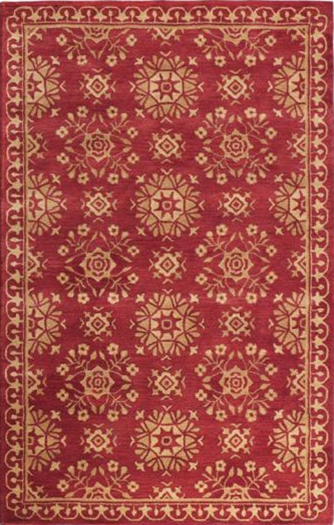 On a knotted pile carpet, the structural weft threads alternate with a supplementary weft that rises at right angles to the surface of the weave.Both vertical and horizontal looms have been used in the production of European and oriental carpets. The warp threads are set up on the frame of the loom before weaving begins. A number of weavers may work together on the same carpet. A row of knots is completed and cut. The knots are secured with rows of weft. The warp in woven carpet is usually cotton and the weft is jute